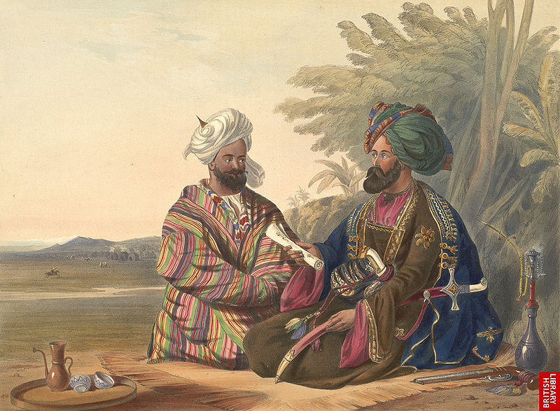 Mir Wali with an Uzbek ambassador in 1840. This lithograph is taken from plate 22 of ‘Afghaunistan’ by Lietenant James Rattray.
